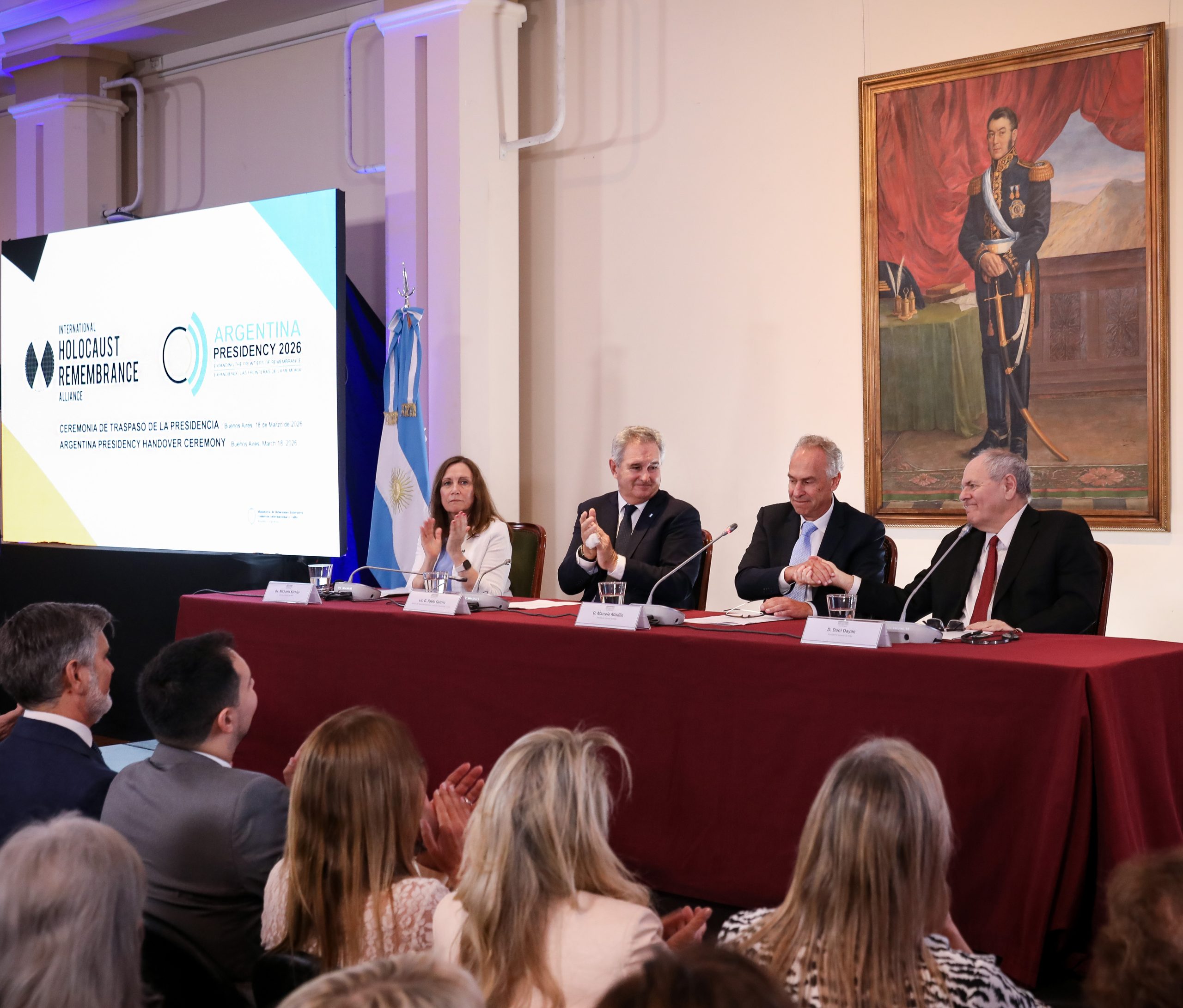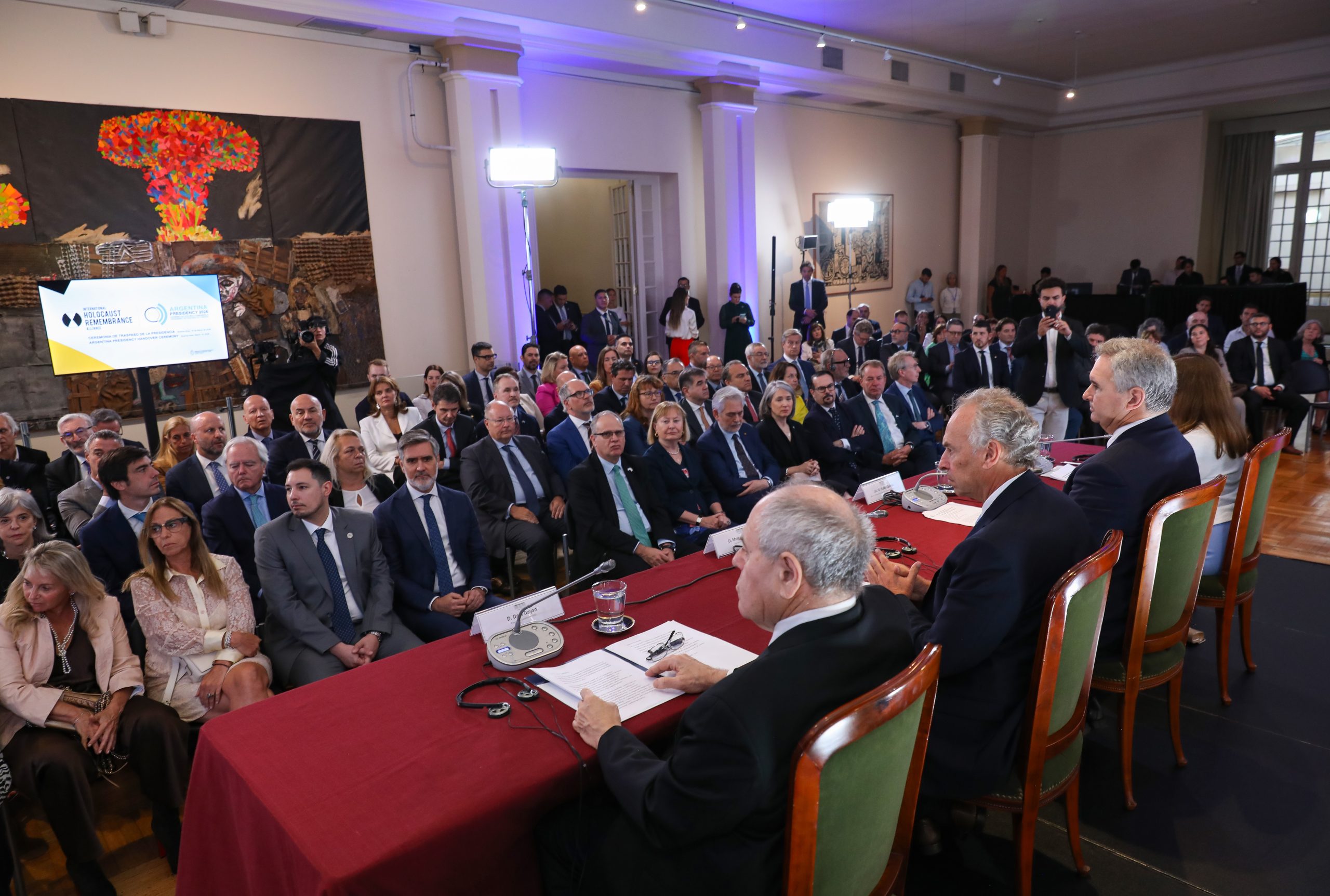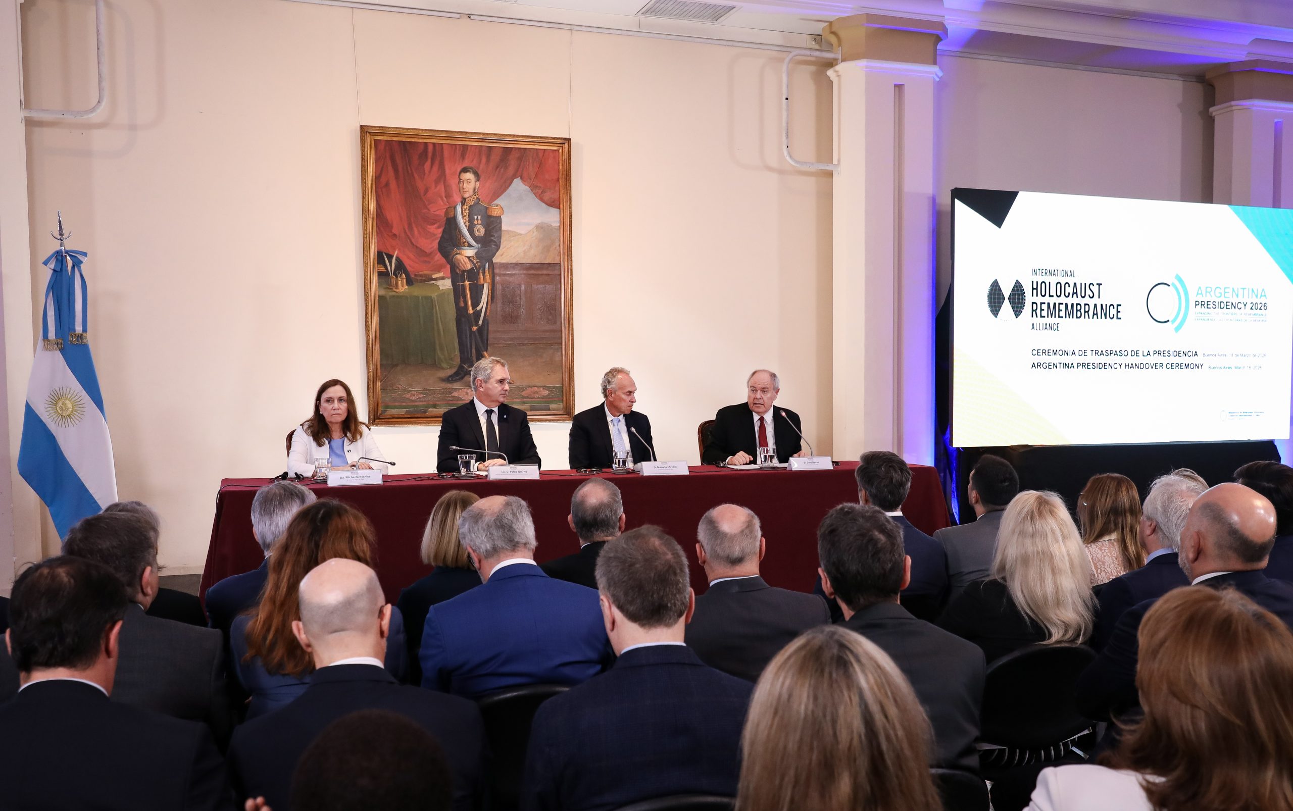 El traspaso de mando de Israel a la Argentina se realizó en el Palacio San Martín en una ceremonia que contó con la presencia del Ministro de Relaciones Exteriores, Comercio Internacional y Culto, Pablo Quirno, del Director del Museo del Holocausto de Buenos Aires, Marcelo Mindlin -en su calidad de Presidente entrante de la IHRA-, de la Secretaria General de la IHRA, Michaela Küchler, del Presidente saliente de la IHRA, Dani Dayan, de miembros del capítulo local de la IHRA y de representantes de la comunidad judía argentina.